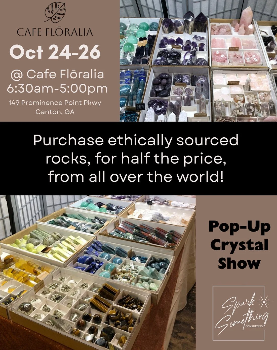 Enjoy a Pop-Up Crystal Shop located at an amazing Coffee Shop called Cafe Floralia. We will be selling the same hours the shop is open except we will be closing an hour early Sunday to break down the displays. Also if you’re looking for some #opalite - because if you know you know then you’ll be at the right location.